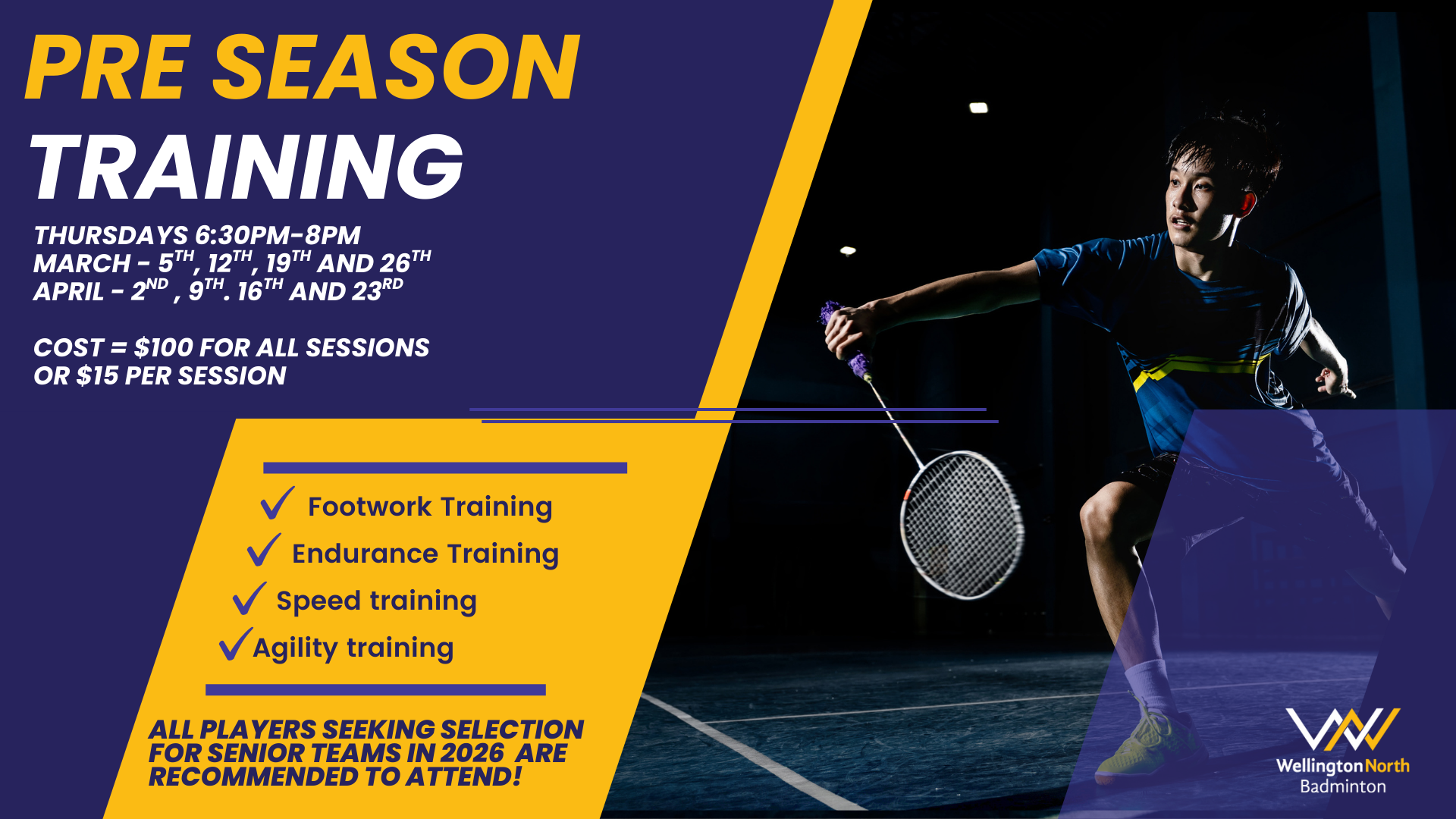 Do you want to get fit and in shape for the up-coming season? Challenge yourself with our pre-season training. We will highly be focusing on fitness, footwork, strength and conditioning. […]